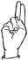 На ћирилици написано ВОЈИМИР БЛАЖЕВАЦ састоји се из 15 слова [?]. Исписано ћириличном једноручном азбуком за глувонеме: